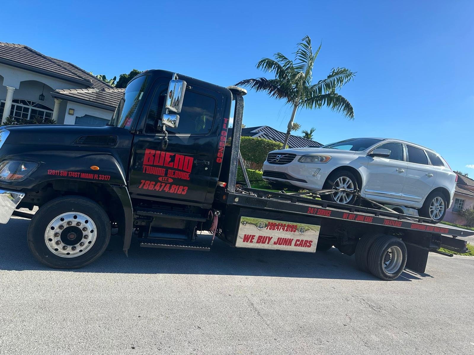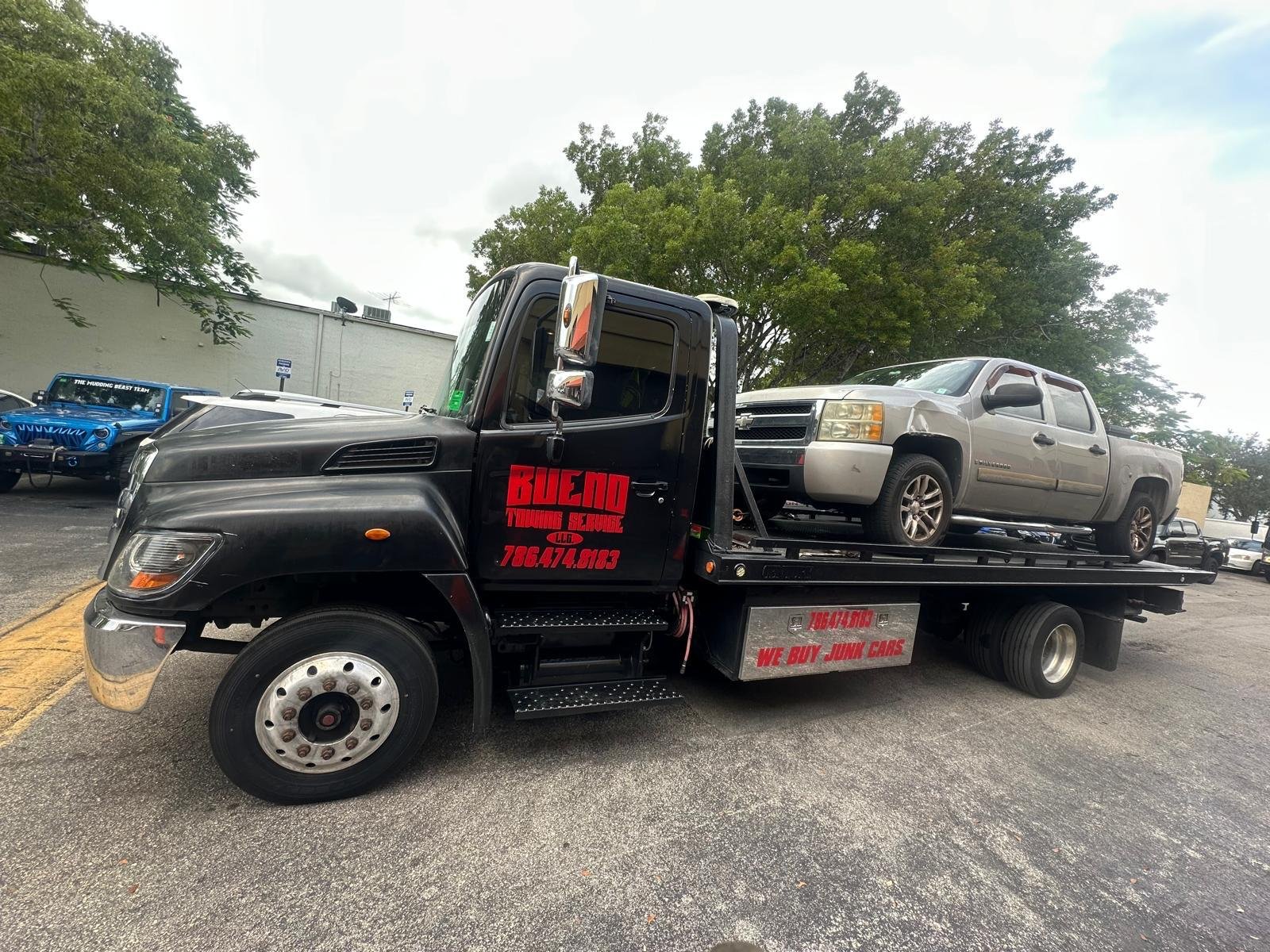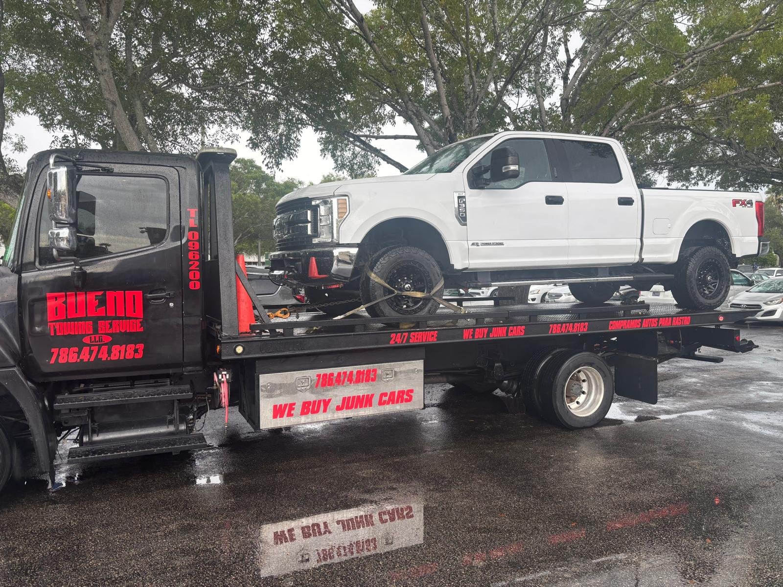 At Bueno Towing Service LLC, we provide professional and dependable towing services across Miami and surrounding areas. With a commitment to fast response times and top-quality service, our team is available 24/7 to assist you when you need it most. From towing to battery jump-starts and tire changes, we’re here to get you back on the road safely.